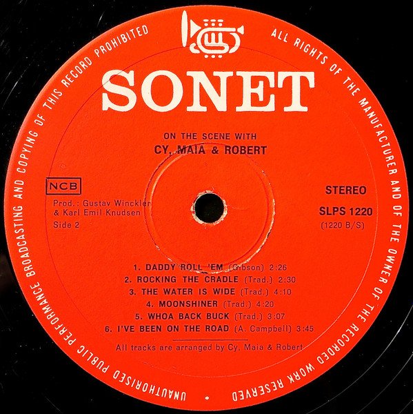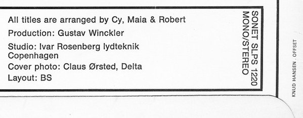 This version: Artist names below portraits on cover back in black letters on white background / All red center labels. Gustav Winckler is credited as producer on back cover and center labels, Karl Emil Knudsen only on center labels. Track lengths for A4 and A6 only indicated on center labels (missing on back cover). Back cover bottom right: Knud Hansen. OFFSET. Top right: FOLK CLUB TUESDAY & THURSDAY 19.30-23.00 DAHLERUPGADE 3