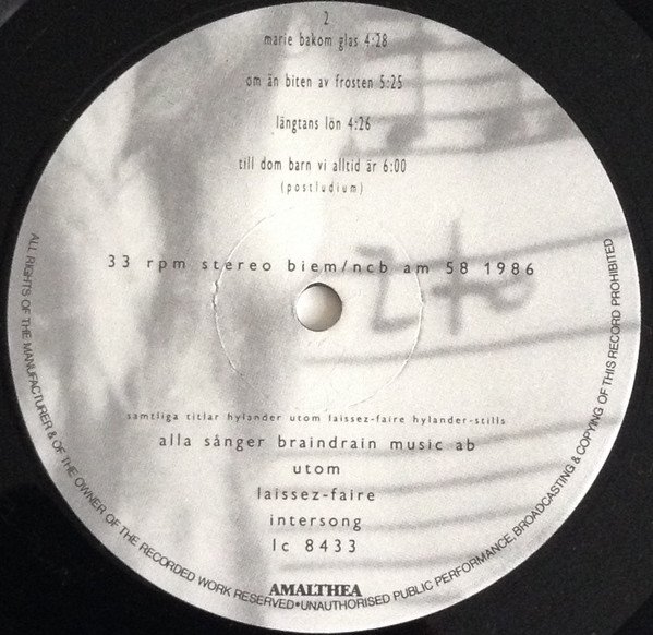 - Matrix / Runout: AM 58 B LP 860908 TISDAG KVÄLL PD-POLAR