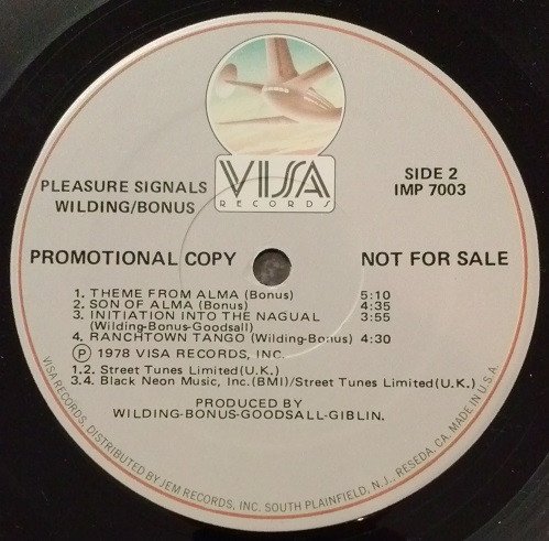 Custom inner sleeve contains photo/credits[Back] ℗ & © 1978 Visa Records, Inc.[Labels] Promotional Copy - Not For Sale ℗ 1978 Visa Records, Inc. Black Neon Music, Inc. (BMI)/Street Tunes Limited (U.K.) [tracks: A1, A3, B3, B4] Black Neon Music, Inc. (BMI) [tracks: A2, A4, A5] Street Tunes Limited (U.K.) [tracks: B1, B2][Inner sleeve] Recorded and mixed at Island Studios, London and Matrix Studios, London.