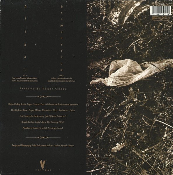 [Rear sleeve]: Recorded at Can Studio Cologne West Germany 1986-87 Published by Opium (Arts) Ltd./Copyright Control Design and Photography: Yuka Fujii assisted by Icon, London. © 1988 Virgin Records Ltd. ℗ 1988 Virgin Records Ltd. Manufactured in the U.K. [B side label]: ℗ 1988 Virgin Records Ltd © 1988 Virgin Records Ltd Published by Opium (Arts) Ltd/Spoon Music-Germ. Manufactured in the UK
