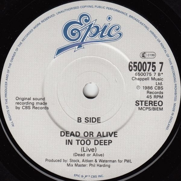 ℗ 1986 CBS Records © 1986 CBS Records Original sound recording made by CBS Records Recorded live at Hammersmith Odeon, July 1985 (tracks: B) Produced for PWL Runouts are etched except for CBS pressing logo 'Λ' and last B and C which are stamped.
