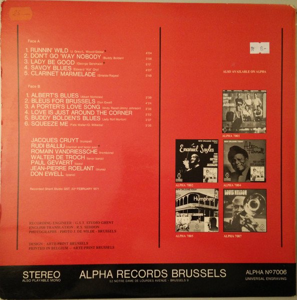 Recorded Ghent Studio GST, 22th February 1971Printed in Belgium - ARTE-PRINT Brussels