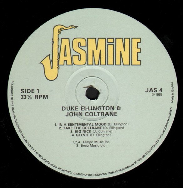 UK 80s Jasmine reissue. Liner notes on back-cover. Light blue labels. Recorded September 28, 1962. Originally issued in 1963. Ⓟ 1963 Published by: A1, A2, A4, B1 to B3: Tempo Music Inc. A3: Bocu Music Ltd.