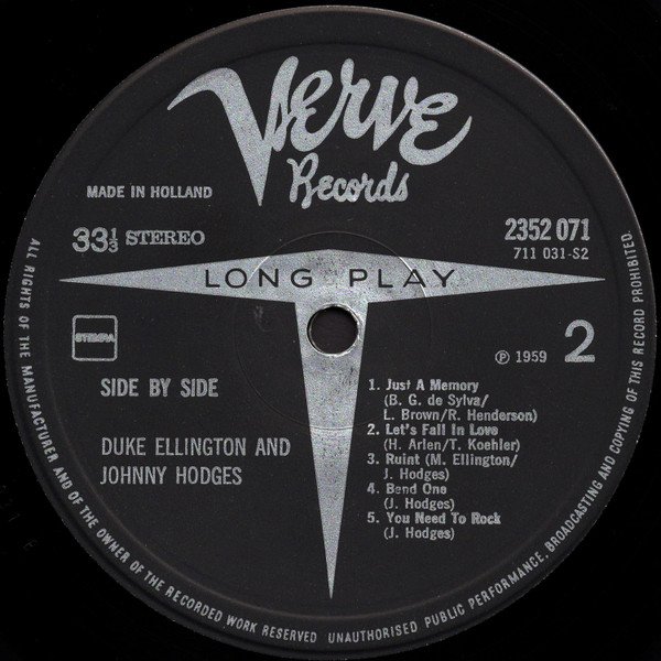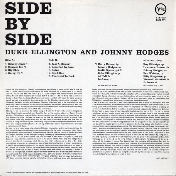 Title A1, A2, A4 rec. New York, Feb. 20, 1959 All other Titles rec. New York, Aug 14 1958 From labels: • MADE IN HOLLAND • ℗ 1959 From the sleeve back: "Original American Recording licensed and trademark registered by Metro-Goldwyn-Mayer, Inc. (Verve Series), New York, USA."