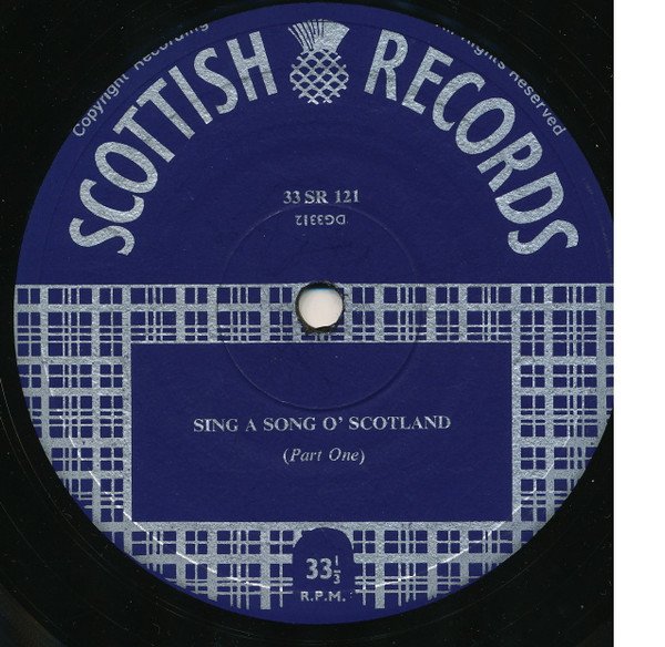 Sleeve front: "sing a song o' Scotland / a musical tour / your guide - Duncan Macrae". Sleeve back: "DUNCAN MACRAE takes you on a musical tour of SCOTLAND". Side A Label: "Sing A Song O' Scotland (Part One)". Printed and made by Garrod & Lofthouse Ltd.
