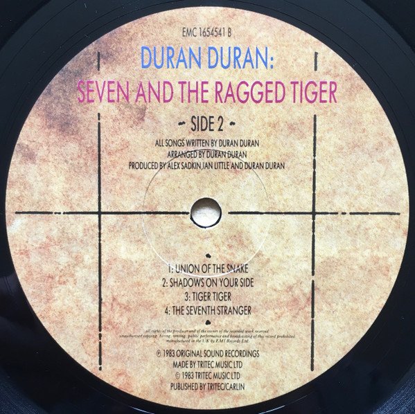 Recorded at Air Studios, Montserrat. Mixed at 301 Studios, Sydney. Manufactured in the UK by EMI Records Ltd. Issued with a matt thin card printed lyric inner sleeve. [Back cover, inner sleeve, record labels] ℗ 1983 Original sound recordings made by Tritec Music Ltd. © 1983 Tritec Music Ltd [Record labels] Manufactured in the UK by EMI Records Ltd Different runouts to [r=213375] which has a crossed out MPO reference in runout and [r=6572395] which is an MPO pressing, otherwise identical.