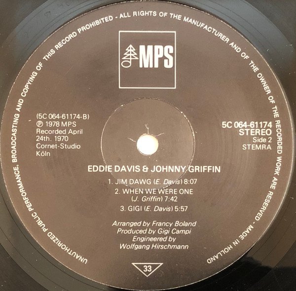 Recorded Apr. 24, 1970, Cornet-Studio, Köln. Recording engineer: Wolfgang Hirschmann Recording director: Gigi Campi Original release (1970): MPS 15283 "Tough Tenors" ℗ 1978 Cover photos: Hans Harzheim Design: Becker / Pfitzer Made and distributed by EMI records holland bv Licensed by MPS Records GmbH Musikproduktion Schwarzwald 773 Villingen Side note: The Arranged By credit is only noted on the record labels, not on the cover.