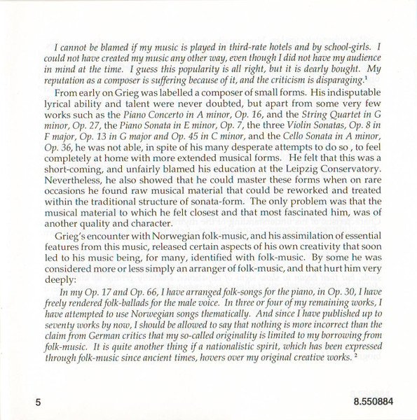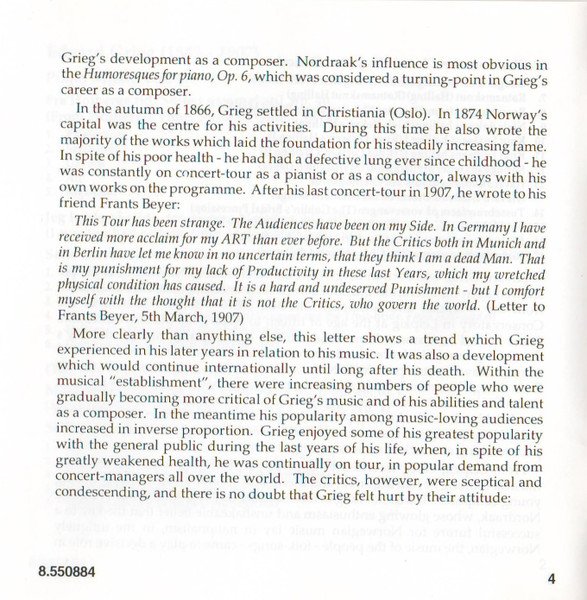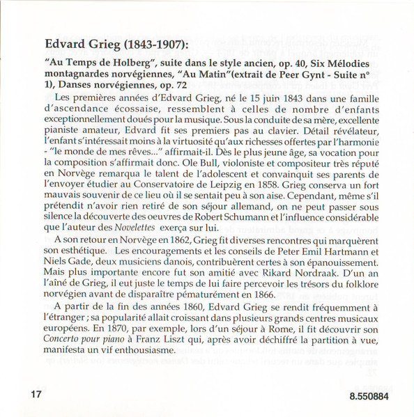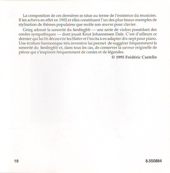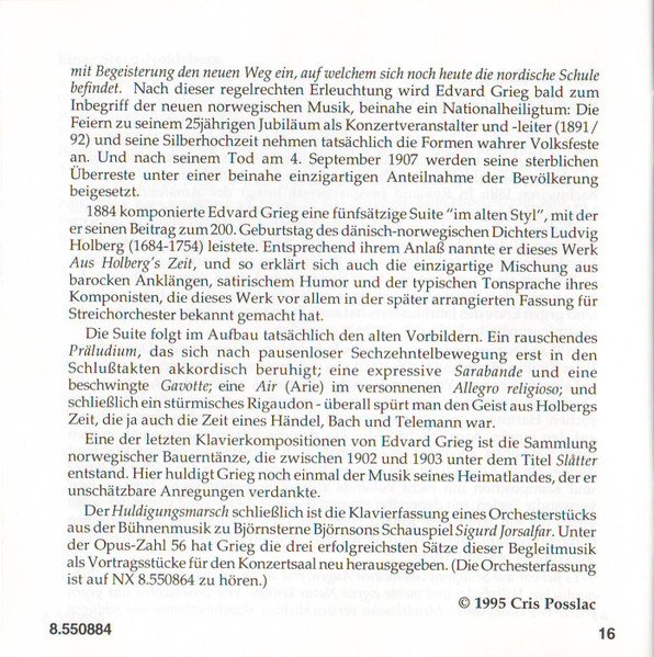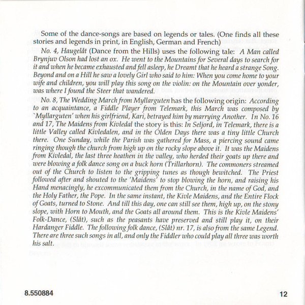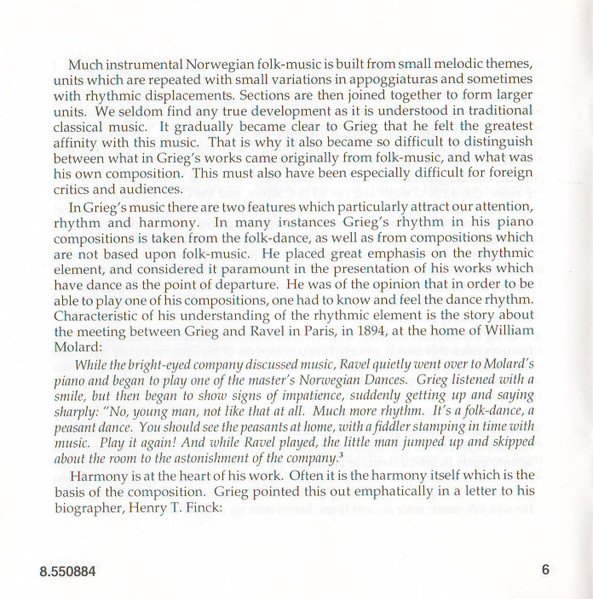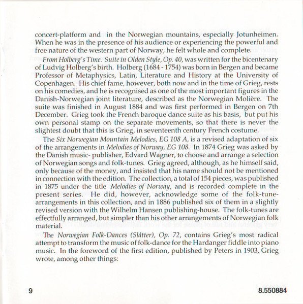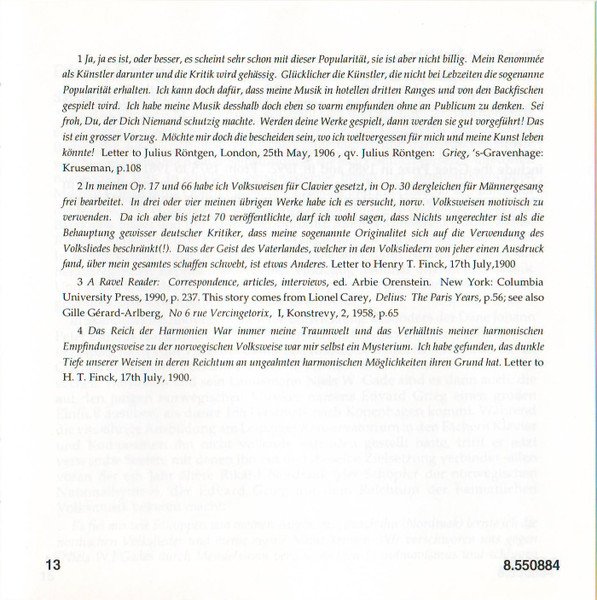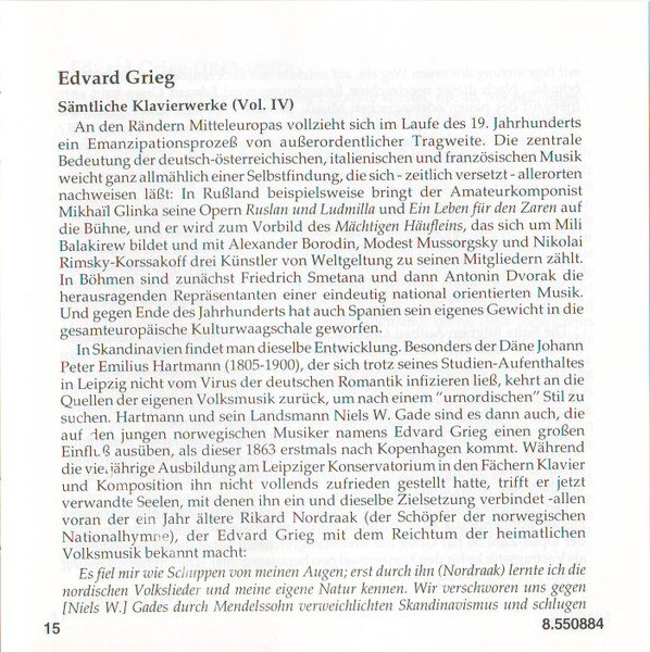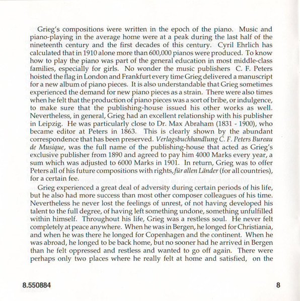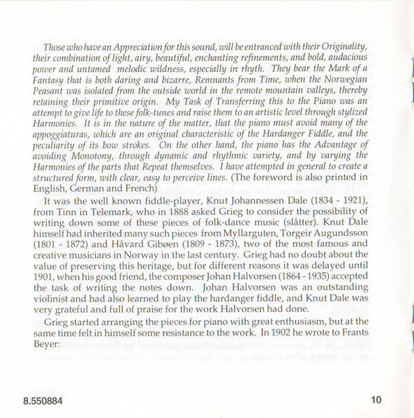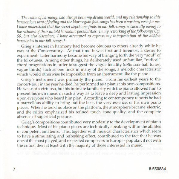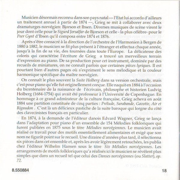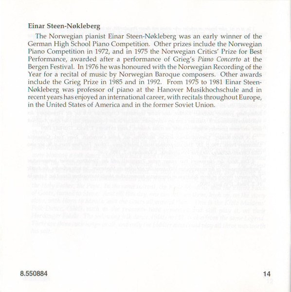 Playing Time: 70'54" Recorded at Lindeman Hall, Norwegian State Academy of Music, Oslo, from 10th to 12th August, 1993. Cover Painting: Steep Roads in Lærdal by Thomas Fearnley (The National Gallery, Oslo, Norway) Liner notes: German translation © 1995 Cris Posslac; French translation © 1995 Frédéric Castello ℗ 1995 HNH International Ltd. © 1995 HNH International Ltd. Distributed by MVD Music and Video Distribution GmbH. Oberweg 21C-Halle V, D-82008 Unterhaching, Munich, Germany Made in Germany CD comes packaged in a standard plastic jewel case, and includes a 20-page booklet with notes in English, German and French. NOTE: This release has a full track list printed inside the booklet and the web address "www.hnh.com" printed on the inlay card, and is thus different from [r2773639].