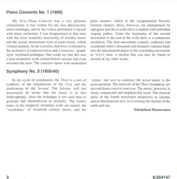 Einojuhani Rautavaara - Cantus Arcticus / Piano Concerto No. 1 / Symphony No. 3