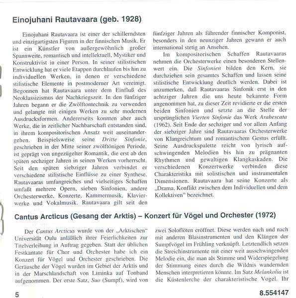 Cantus Arcticus, Op. 61 (Concerto For Birds And Orchestra) | 18:44 | |