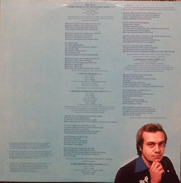 ℗ © 1976 Sackville Productions Ltd. (sleeve); © 1976 MCA Records, Inc. (label); lyrics © 1976 Big Pig Music Ltd.Gatefold sleeve has custom (cardstock) inner sleeves containing lyrics/credits corresponding to discsBasic tracks recorded at Eastern Sound, Toronto, Canada; Orchestra tracks A2, A3, B3, D2 recorded at EMI Studios, Abbey Road, London; Backing Vocals tracks A4, B2, B3, C3, C4, C5 recorded at Brother Studio, Santa Monica, California; Horn Section tracks B1, B4, D3, Backing Vocals tracks B1, B4, D1, D3, D4, and Strings C1, D4 recorded at Sunset Sound Recorders, Los Angeles.