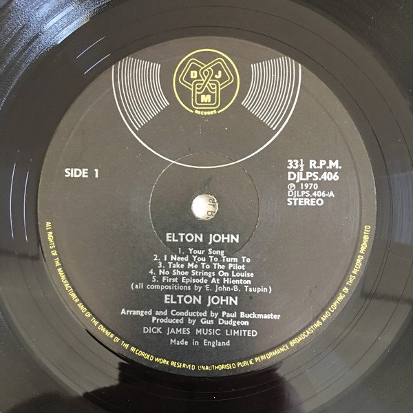 Matte Textured Sleeve. Yellow icon and rim text on label. The RPM / DJLP details on the right of both labels are straight rather than staggered .All lyrics (C) Copyright 1969 (except track A5 1968) by Dick James Music Ltd. London. Dick James Music Ltd. Made in England. Printed and made by the E.J. Day Group, London and Bedford.
