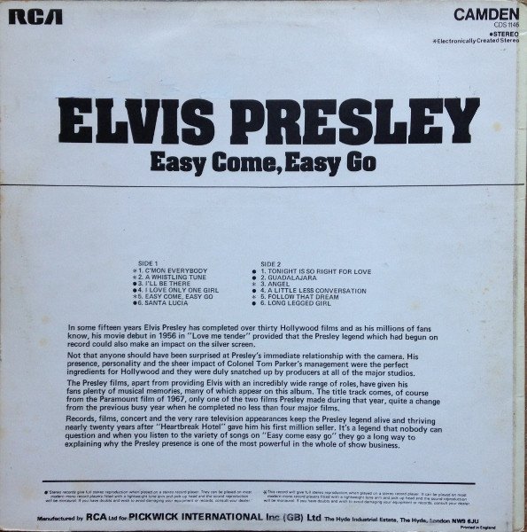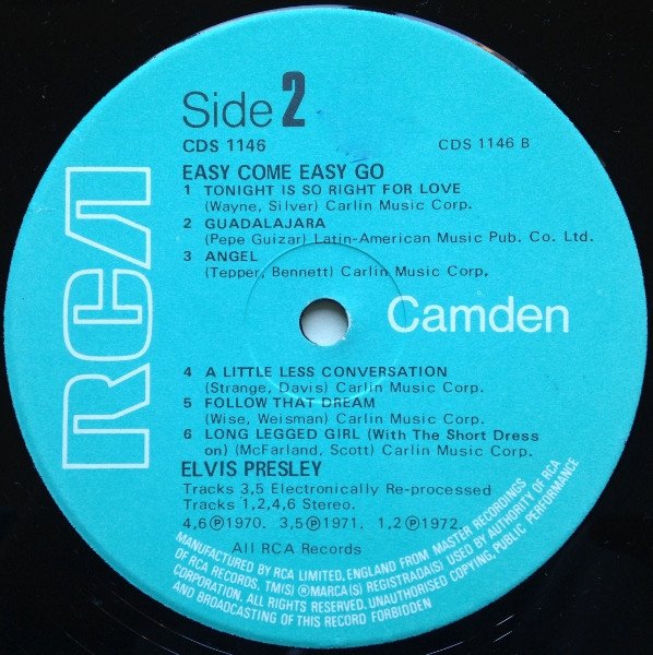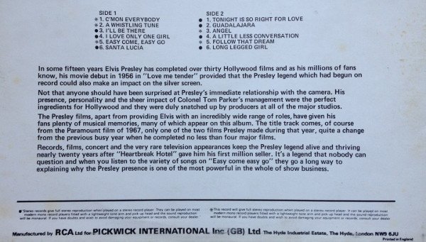 Front laminated sleeve. Publishing info: A1, A3 to A6, B1, B3 to B6: Carlin Music Corp. A2: Manor Music. B2: Latin-American Music Pub. Co. Ltd. Tracks A1, A2, A5, B3, B5 Electronically Re-processed Tracks A3, A4, A6, B1, B2, B4, B6 Stereo A3: ℗1969. B4, B6 ℗1970. A1, A2, A5, B3, B5 ℗1971. A4, A6, B1, B2 ℗1972 Manufactured by RCA Limited, England from master recordings of RCA Records. Manufactured for Pickwick International Inc (GB) Ltd. Printed in England