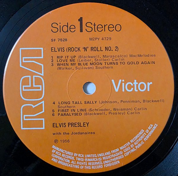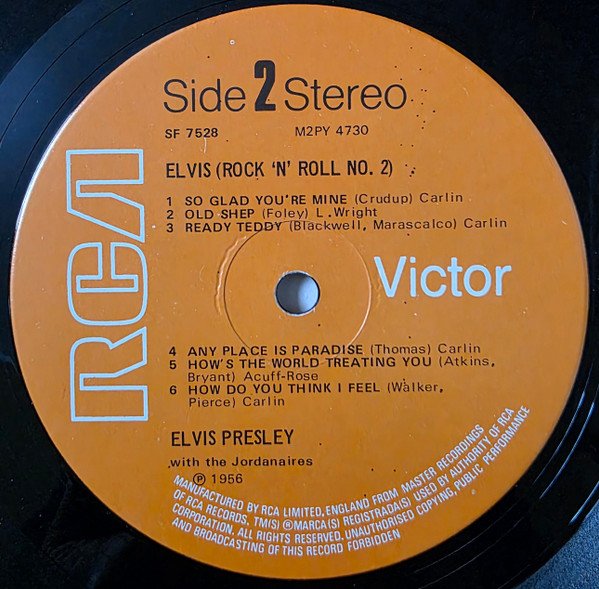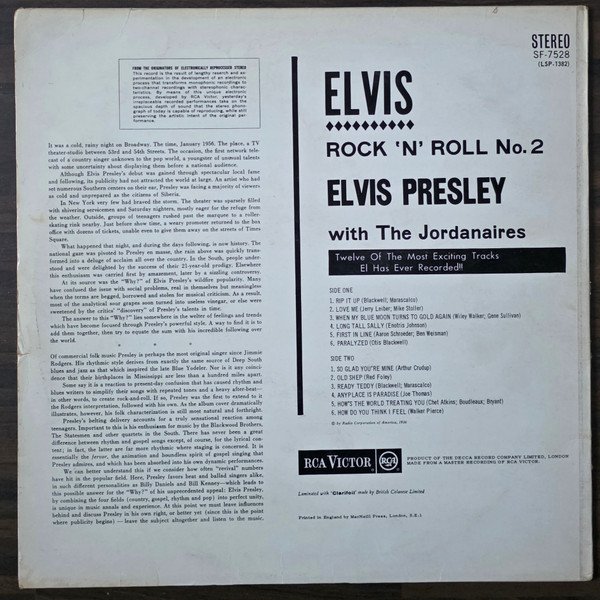Elvis - Rock 'N' Roll No. 2 Elvis With The Jordanaires Twelve Of The Most Exciting Tracks El Has Ever Recorded!! RCA Victor - Made From A Master Recording Of RCA Victor Laminated With 'Clarifoil' Made By British Celanese Limited Printed In England By MacNeill Press, London, S.E.1 (P) 1956
