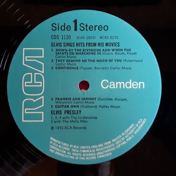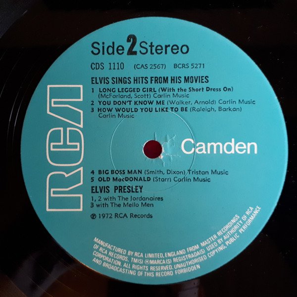 This version has tracks 1,2 and 3 above the centre hole on side 1 not tracks 1 and 2! Durations do not appear on this release. Timings via stopwatch. Cat.#. CDS 1110 on back cover and cat.#s. CDS 1110 (CAS 2567) BCRS 5270 on labels. For similar version with different back cover, see [r31160273].