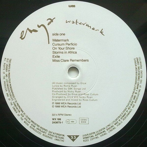 Slightly different label printing compared with [r15703036], "Published by Aigle Music" is additionally printed there on the labels above "(p) 1988 WEA Records Ltd." and is missing here. Mixed at Wessex Studios Davy Spillane courtesy of Tara Records. ℗ 1988 WEA Records Ltd © 1988 WEA Records Ltd. Manufactured in Germany by Record Service GmbH, Alsdorf Insert: Aigle Music Labels: SBK Songs Ltd. Comes with a printed inner sleeve (UK: WX 199, 243875-1). Track durations are not listed on the release.