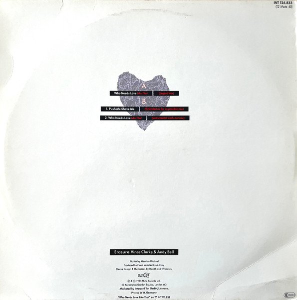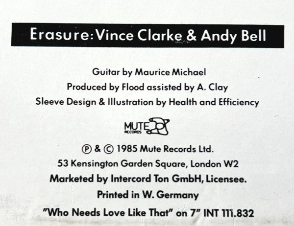 First mute logo on label. Runouts are stamped except "Ⓢ" which is etched. ℗ & © 1985 Mute Records Ltd. Printed in W. Germany