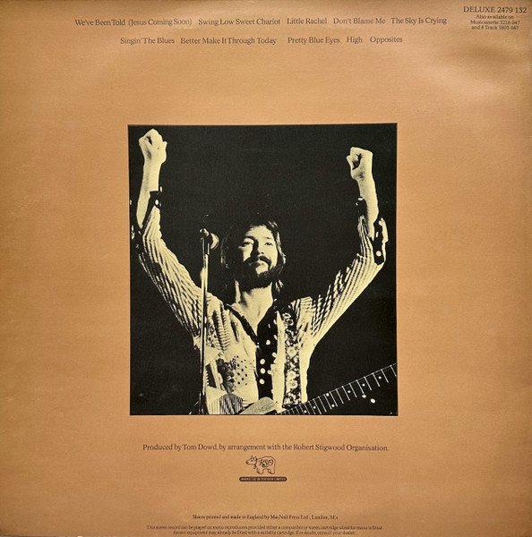 ℗ 1975 RSO Records. Recorded at Dynamic Sounds Studio, Kingston, Jamaica and at Criteria Recording Studios, Miami, Florida. Made in England. Produced by Tom Dowd by arrangement with The Robert Stigwood Organisation. Sleeve printed and made in England by MacNeil Press Ltd., London SEI. Cat.No on rear of the sleeve reads: DELUXE 2479 132 Published By: A1, A2, A4: Throat M. A3: ATV M. A5: Planetary Nom B1: ATV Music B2 to B5: Throat Music Track A1 is credited to Willie Johnson on the insert and Trad. on the label Track A5 is credited to Elmore James & Morgan Robinson on the insert and Elmore-Robinson-Lewis on the label Inserts are sequentially numbered. Embossed sleeve.