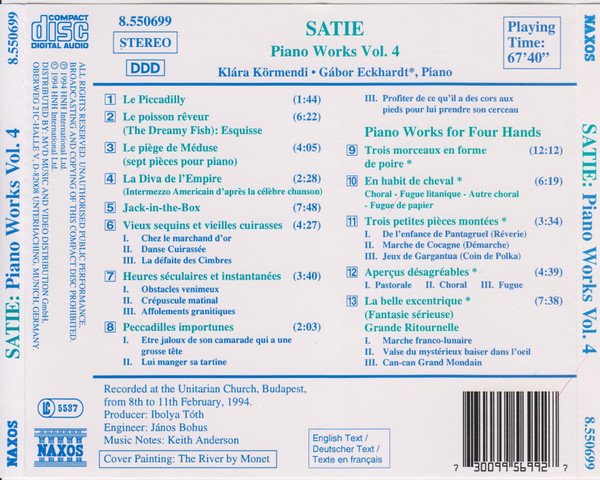 Recorded at the Unitarian Church, Budapest, from 8th to 11th February, 1994.(c) & (p) 1994CD manufactured in Germany.12 page booklet.