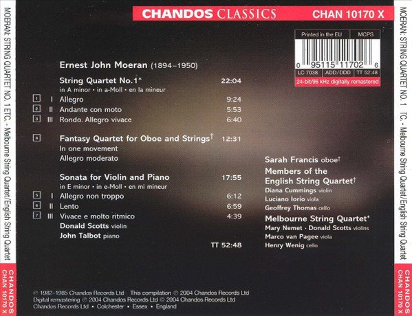 Ernest John Moeran - String Quartet No.1 · Fantasy Quartet · Sonata For Violin And Piano
