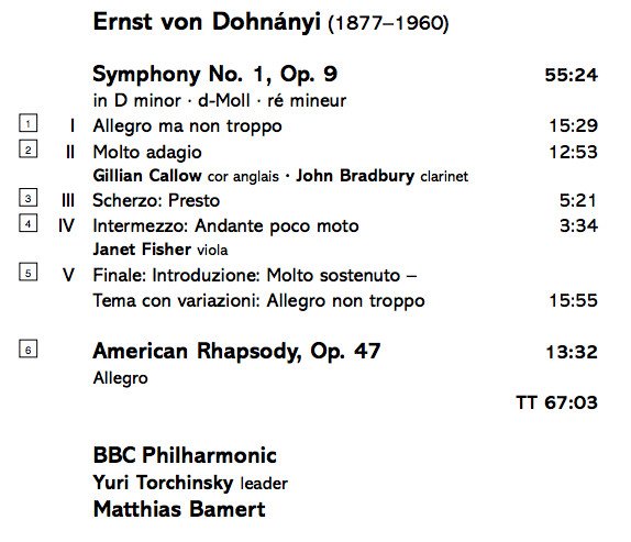 Ernst von Dohnányi - Symphony No. 1 / American Rhapsody