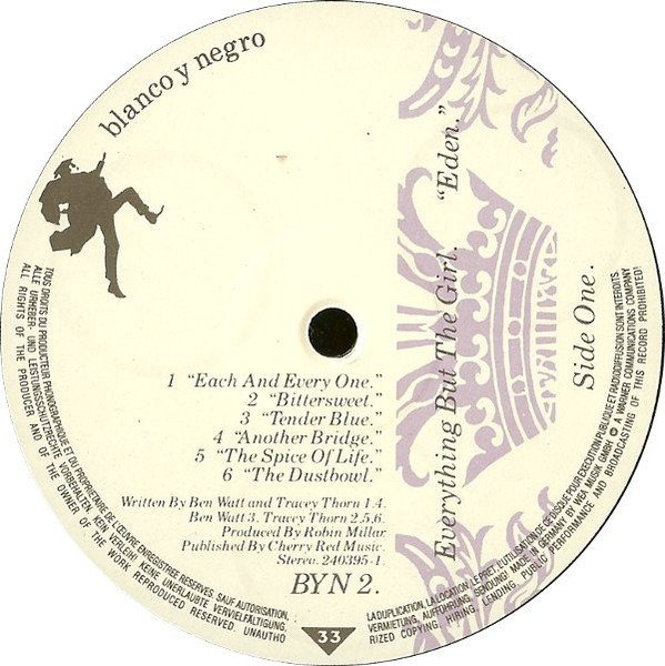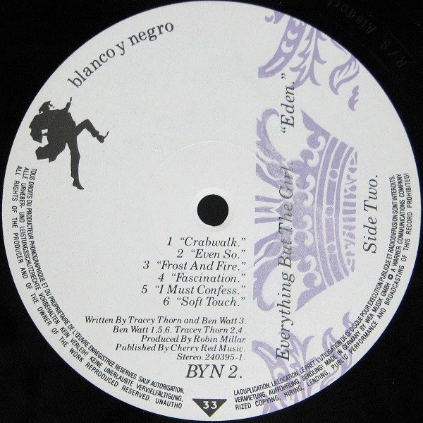 Produced by Robin Millar at Powerplant studios, London, NW10. Thank you to Mike Alway, Geoff Travis and to Tommy Watt for his help ⓒ 1984 WEA Records Ltd ⓟ 1984 WEA Records Ltd Manufactured in Germany by Record Service GmbH, Alsdorf - Pressé en Allemagne par Record Service GmbH, Alsdorf - (W) A Warner Communications Company Backcover: GB: BYN-2 240 395-1 Ⓤ France: WE 361 Runout details are stamped except timtom cbs. and TY - cbs GB etched. Variant 2 also with 6 ^ and 13 etched. Variant 3 also with J etched on side A.