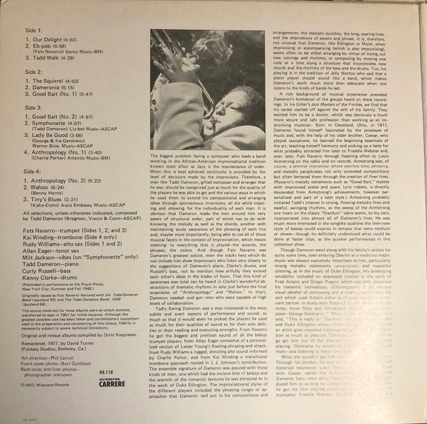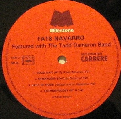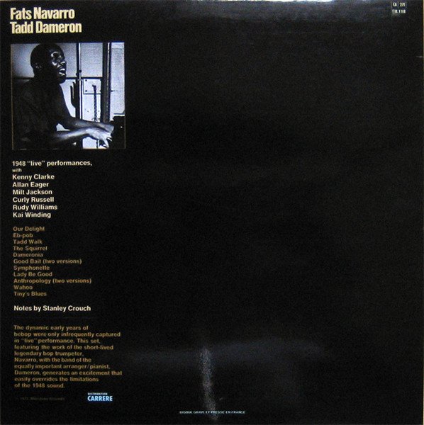Recorded in performance at the Royal Roost, New York City; Summer and Fall 1948. Remastered, 1977 at Fantasy Studios, Berkeley, Ca. Originally issued as "Fats Navarro featured with the Tadd Dameron Band" (Jazzland 50) and "The Tadd Dameron Band" (Jazzland 68). ℗ 1977 Milestone Records Made in France Distribution Carrere