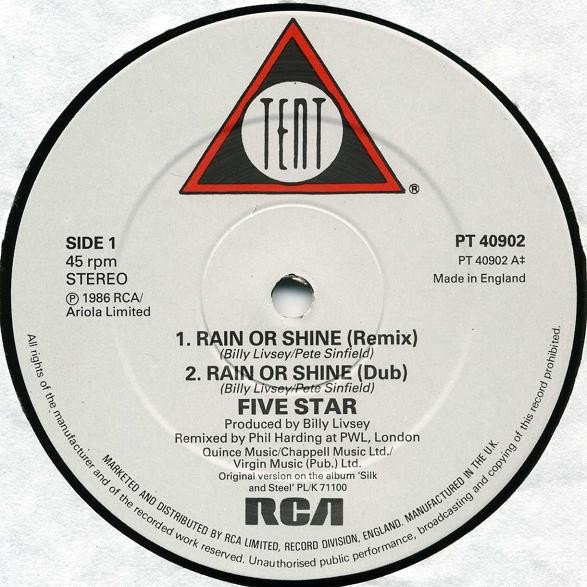 Manufactured in the U.K. A1, A2: Quince Music/Chappell Music Ltd./Virgin Music (Pub.) Ltd. Remixed at PWL, London B1: Tent Music Ltd./Chrysalis Music Ltd. B2: Chrysalis Music Ltd./Island Music Ltd. Remixed for Mastermix Productions.
