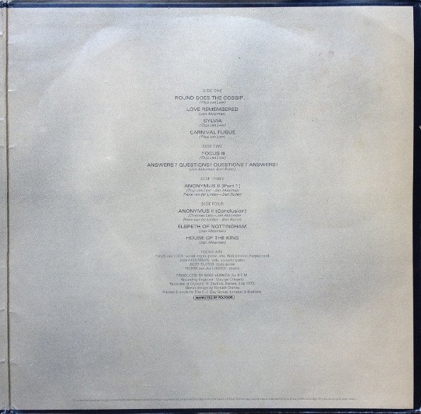Matte gatefold sleeve with polylined inner sleeves. Made In England. ℗ 1972 Polydor Ltd Sleeve: Recorded at Olympic "B" Studios, Barnes, July 1972. Printed & Made by the E.J. Day Group, London & Bedford. Marketed by Polydor. Very similar to [r=20825425]. [r=628918] has 'Made in U.S.A.' on labels. On this version, C1 is printed as 'Anonymus II (Part I)', whereas on [r=20825425] it is printed as 'Anonymus II (Part 1)'. All runouts stamped.