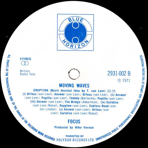 White Blue Horizon labels with text in blue, ⚭ Stereo to the left and lower-case Britico below it, unlike [r=15416390] which has BRITICO in caps. First cat#. on cover, second on label. On the back cover the track positions for the B-side are listed as ''I, II, III, IIII, IV'' Recorded between April 13 and May 14, 1971 at Sound Techniques and Morgan Studios, London. ℗ 1971. First edition with Blue Horizon white/blue label, Blue Horizon logo on back cover. This was soon followed by a repress, [r=4930835] with a Polydor logo on back cover and keeping the Blue Horizon label, although with slight variations in the lettering and general layout.