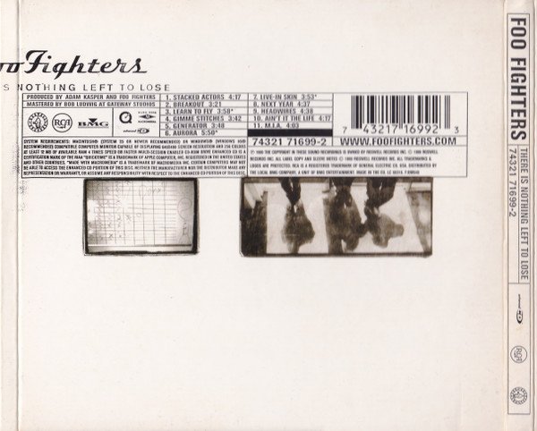 ℗ 1999 The copyright in these sound recordings is owned by Roswell Records Inc. © 1999 Roswell Records Inc. Comes in an 8 page foldout Digipak. Made in the EU. Hype sticker - "Foo Fighters There Is Nothing Left To Lose Featuring: Learn to Fly, Breakout & Aurora. Plus: Enhanced CD Includes Multimedia Ya Da Ya Da 07863 67892-2". Has video for Learn to Fly, Lyrics to all the songs and some photos. Also available in jewel case packaging, see [r=10237903]. This similar digipak edition of [r=1089482] has Cat# "07863 67892 2" / Barcode "078636789224".