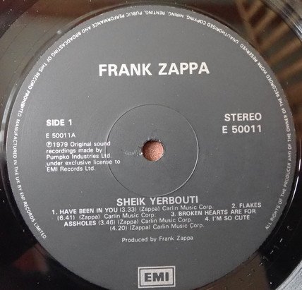℗ 1979 Original sound recordings made by Frank Zappa under licence to EMI records Ldt. RB8601HP Different printed barcode on back cover instead of: https://www.discogs.com/fr/release/1699075-Frank-Zappa-Sheik-Yerbouti Runouts are stamped