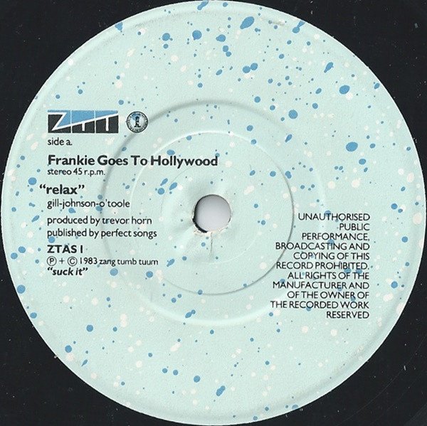 ℗ + © 1983 Zang Tumb Tuum Side A: "suck it" Side B: "soap it up" Invented in London SEPTEMBER 1983. This has, in company with the twelve inches, been number one in Zang Tumb Tumb's bold action series. One September Monday Four A.M. in the Zang Tuum Tumb recording studio. Paul and Holly relax after a hard days singing. And so a little chat about life, Liverpool and parties give it loads in that direction. This version has no "Damont" credit in the runouts. The Damont pressed version is here: [r=29417] This version also has a jukebox press (variant 6)