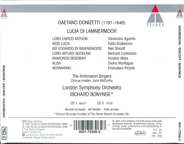 Recorded at St. Augustine's Church, London - September, 1991. Comes in a boxset including a 2-CDs jewel case and a 170-page booklet, with liner notes in English, German, French and libretto in Italian, English, German, French. ℗ & © 1992Teldec Classics international GmbH Made in Germany.
