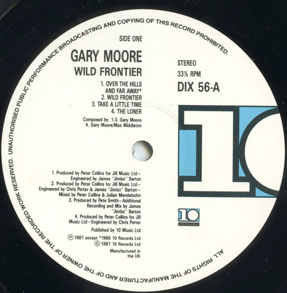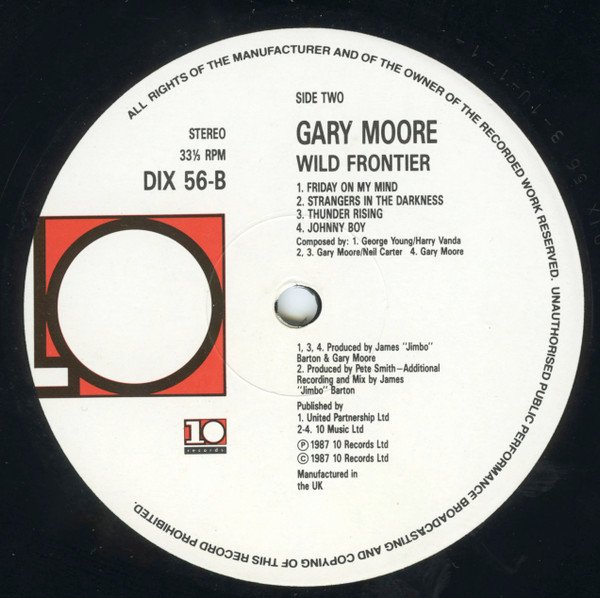 'For Philip' dedication on bottom right back cover, dedicated to Phil Lynott All titles published by 10 Music Ltd. except Friday On My Mind, published by United Partnership Ltd. Runouts are stamped, except 'Townhouse DMM' is etched.