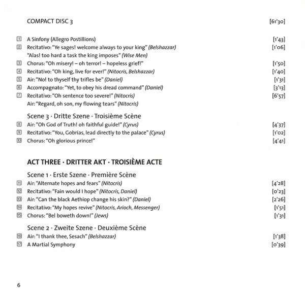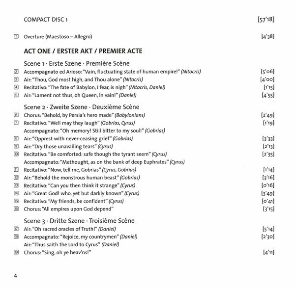| 1-4 | Recitativo: "The Fate Of Babylon, I Fear, Is Nigh" (Nitocris, Daniel) | 1:15 |