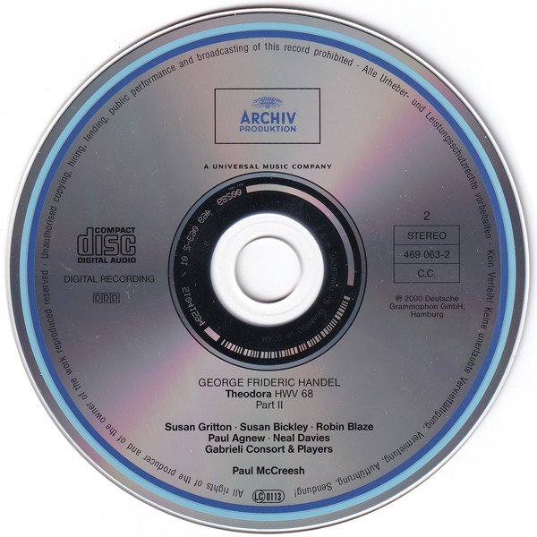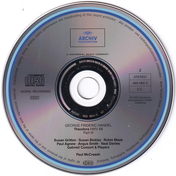 Recording: London, Tooting, All Saints Church, 1/2000. ℗ 2000 Deutsche Grammophon GmbH, Germany Publishers: King's Music, Huntingdon Printed in Germany by Neef, Wittingen. Made in Germany Pitch: a' = 418 Hz Temperament: modified 1/5 comma meantone Total Playing Time CD 1 = 76:21. Total Playing Time CD 2 = 60:36. Total Playing Time CD 3 = 46:56.