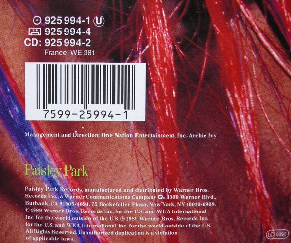 Sleeve: © 1989 Warner Bros. Records Inc. for the U.S. & WEA International Inc. for the world outside the U.S. ℗ 1989 Warner Bros. Records Inc. for the U.S. & WEA International Inc. for the world outside the U.S. Manufactured in Germany. Dust sleeve with lyrics and credits: © 1989 Warner Bros. Records Inc. for the U.S.