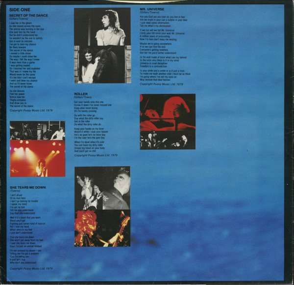 All tracks are recorded and mixed at Kingsway Recorders Ltd London. Track B5, "Fighting Man", was recorded at a previous session - the alternative lineup is credited for that song. This album is a K. R. Production. George Peckham did the cut at Portland Studios, London. Has an inner sleeve with photographs and lyrics of all songs. Runouts are stamped, except "A PORKY PRIME CUT" which is etched. ℗ & © 1979 Acrobat Records Ltd.