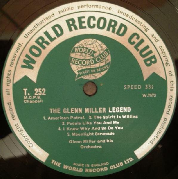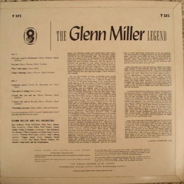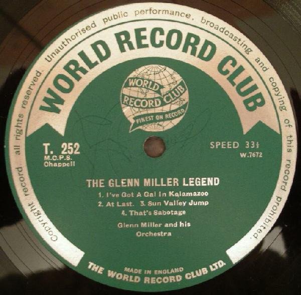 Tracks A2, A3, B4 & B5 taken from the soundtrack of Sun Valley Serenade (1941) Tracks A1, A4, B1, B2 & B3 taken from the soundtrack of Orchestra Wives (1942) "T 252" on sleeve, "T. 252" on labels.