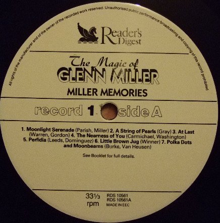 Recordings licensed from BMG Music/BMG Records (UK) Ltd. Original sound recordings made by BMG Music. This compilation, notes, cover and design are copyright of The Reader's Digest Association Limited. Contains a booklet with historical information and photos of Glenn Miller. Made in the EEC