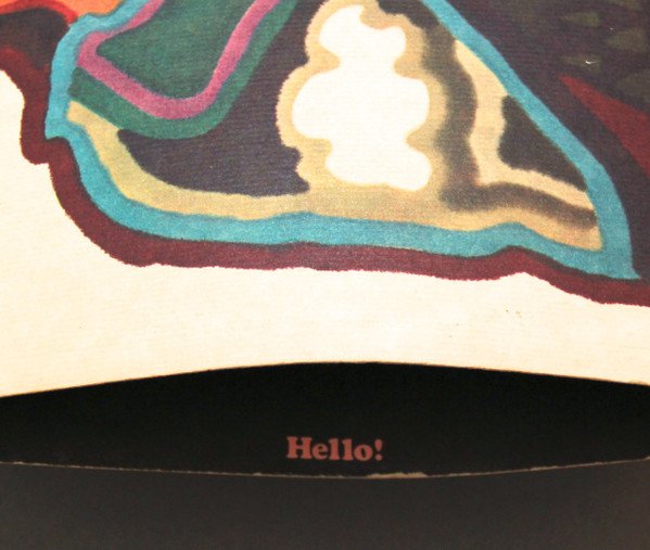 Issued in a textured matte surface jacket. Some copies came with a promo / timing sticker. The jacket's liner is embossed with Joni Mitchell's painting of Nash. The inside of the front cover of the jacket is printed with the word "Hello!" in pink on black very close to the opening for the insertion of the LP. So, the Hello! can best be viewed with the liner side facing the user and the opening on the left side. Then, spreading the opening, the Hello! word can be viewed when peeking inside. The inner sleeve is printed on matte textured paper with lyrics on one side and other side blank. 1973-75 Atlantic red and green labels with the 75 Rockefeller Plaza address. [l130920] pressing per "PR" on labels and in runouts. Runouts are etched except stamped 'TML' and '1L'.
