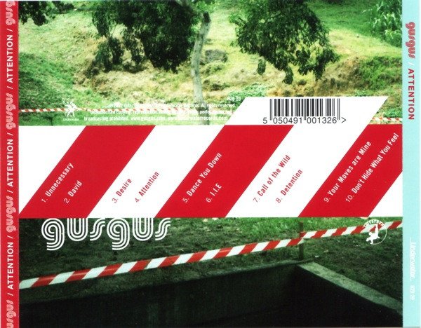 Mixed on Mackie 16VLZ. ℗ 2002 gusgus © 2002 Underwater Records. All tracks published by Universal Music Publishing except track 7 by Warp Music Jewel case housed in a cardboard sleeve.