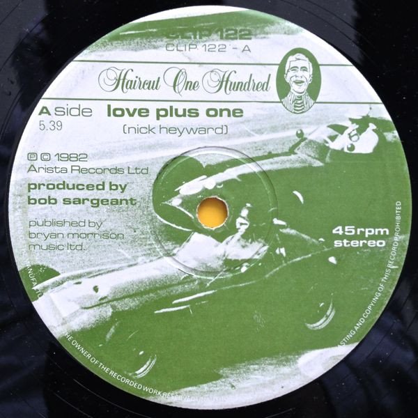 a kingsize stereo forty five cut. Published by Bryan Morrison Music Ltd. ℗ © 1982 Arista Records Ltd. Manufactured and distributed by Polygram Records Ltd. Both songs are extended mixes of the album/7" tracks but this is not indicated on the release.