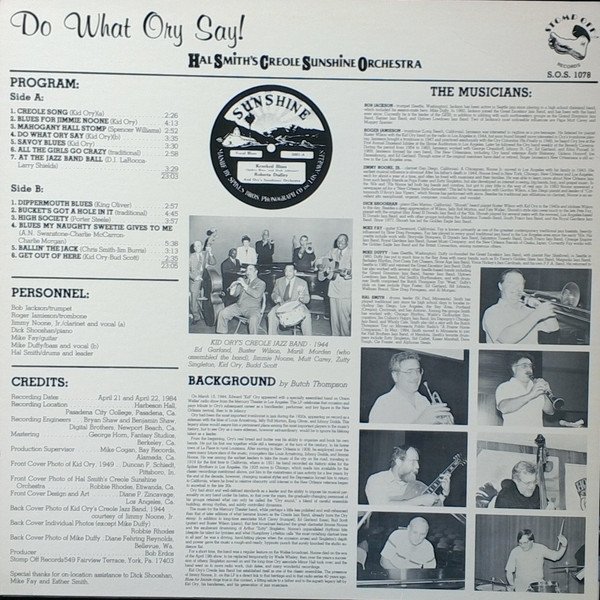 Hal Smith’s Creole Sunshine Orchestra – Do What Ory Say!