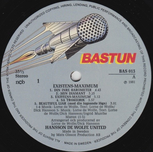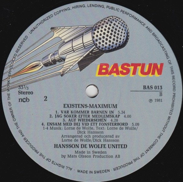Recorded at Bastun, Stockholm 1980-1981. (P)&(C) 1981 Planet Records, Solna, Sweden. Made in Sweden by Mats Olsson Production AB. Catalog# is printed as "BAS-013" on the cover and as "BAS 013" on the labels. There are other release where at least one runout has been signed.
