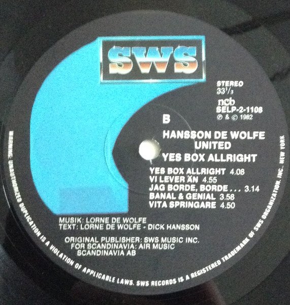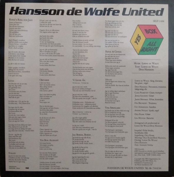 Recorded at Polar Studio, Stockholm, 1982. (C)1982 SWS Organization Inc. (P)1982 SWS Music Inc. Distributed by Mariann, Skara.