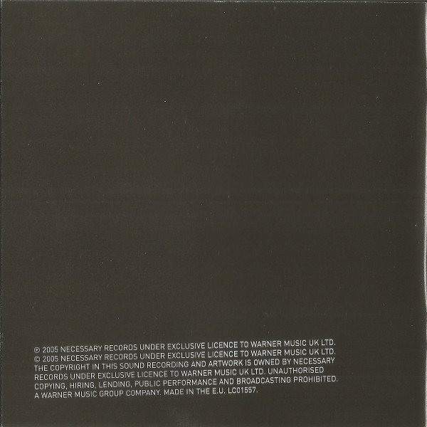 1st studio album. All tracks produced and mixed by Wolsey White for "Gran Tourismo" and Richard Archer for "No Pot To Piss In Productions" except track 7. Recorded @ 'The Cherry Lips Hits Facilty' Staines, West London. Mastered at 360 Mastering, London. ℗ 2005 Necessary Records under exclusive licence to Warner Music UK Ltd. © 2005 Necessary Records under exclusive licence to Warner Music UK Ltd. The copyright in this sound recording and artwork is owned by 2005 Necessary Records under exclusive licence to Warner Music UK Ltd. A Warner Music Group company. MADE IN THE E.U. printed in booklet, on CD and rear artwork insert. The copies in this version have a solid yellow disc face. For similar copies with an almost translucent disc face see [r14436688]