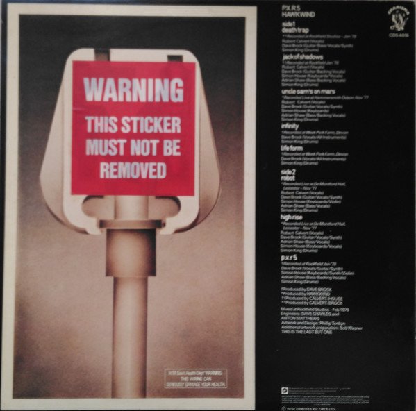 Initial copies issued without "warning" sticker. Marketed by: Phonogram Ltd. on centre labels; Charisma Records Ltd. on rear cover.