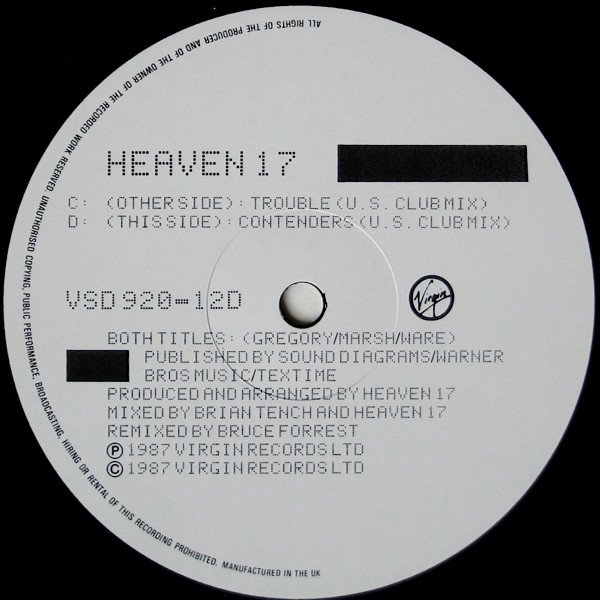 Double Pack. Comes in Gatefold Sleeve. Published by Sound Diagrams/Warner Bros Music/Texttime ℗ 1987 Virgin Records Ltd © 1987 Virgin Records Ltd Manufactured in the UK